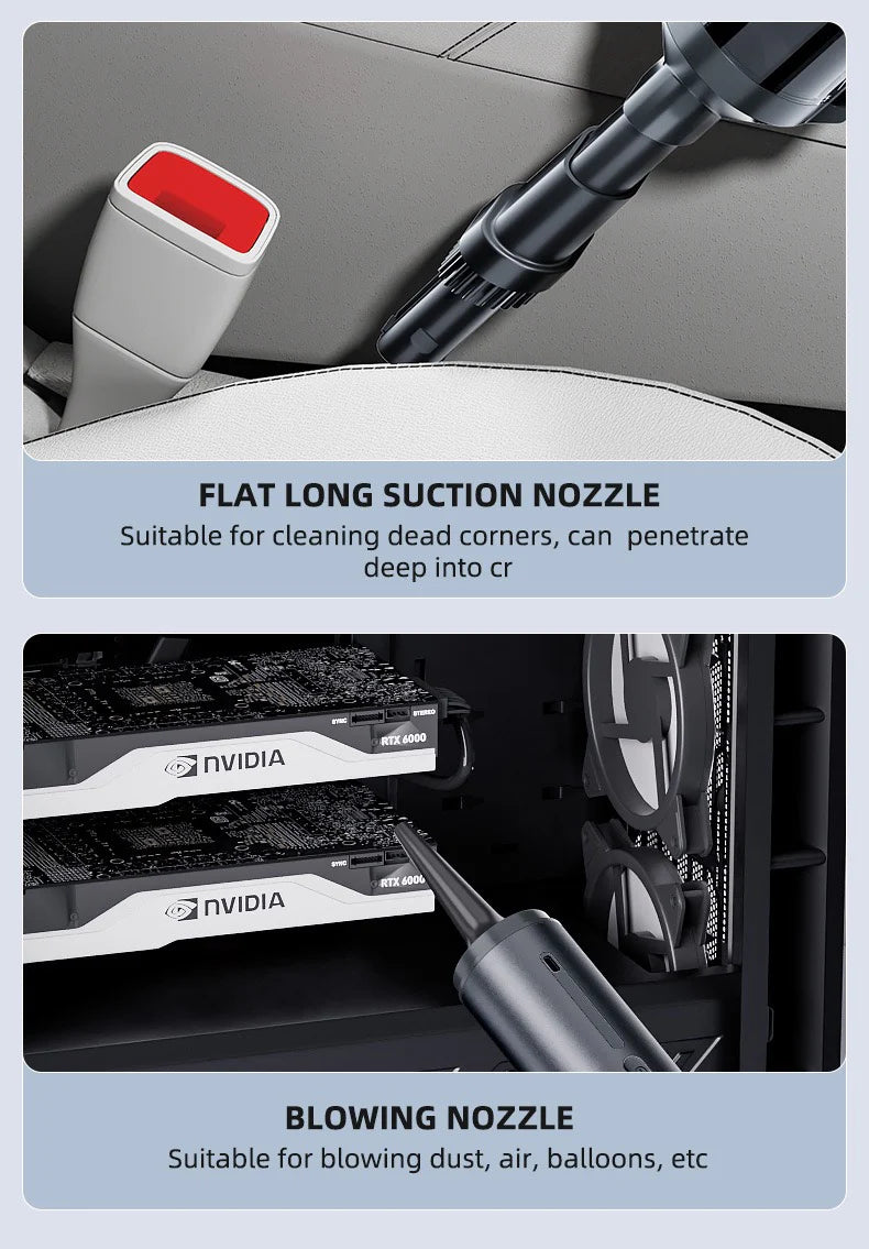 🌀 Sistema dual 2 en 1: aspira y sopla con solo cambiar el modo.
