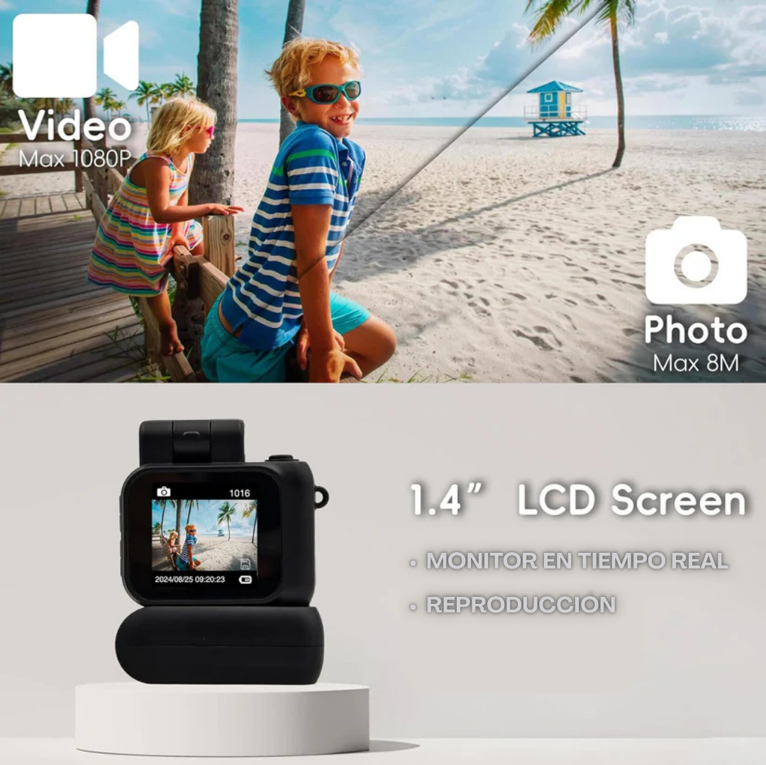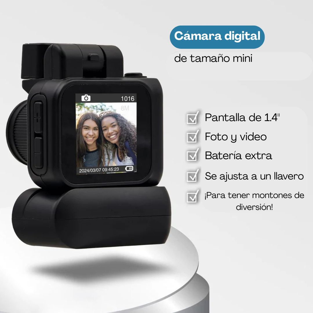 A pesar de su tamaño, graba videos Full HD 1080p y toma fotos de 8 MP con un filtro retro que le da ese toque nostálgico que todos aman ❤️
